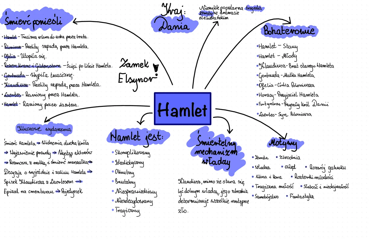 - Motyw śmierci jest wszechobecny, kształtując światopogląd Hamleta oraz wpływając na reakcje innych postaci, takich jak Laertes i Ofelia.