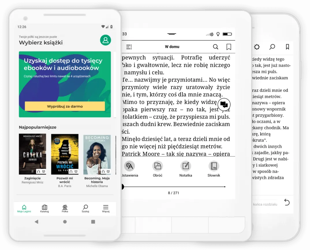 Legimi umożliwia pobieranie ebooków na urządzenie mobilne, by czytać je bez dostępu do internetu. Aby to zrobić: